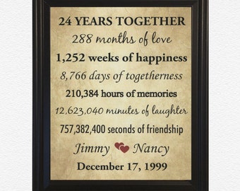 24th Anniversary Gifts, 24 Year Anniversary, Framed 24th