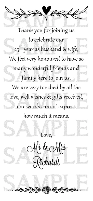 Wedding Anniversary Favour Thank You Scrolls Cards Personalised