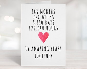 Printable Anniversary Card, 14th Anniversary Card, Fourteenth Year