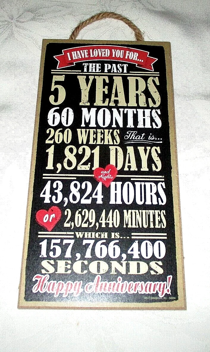 HAPPY ANNIVERSARY I HAVE LOVED YOU 5 YEARS 60 MONTHS etc Wood