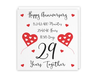 29th Wedding Anniversary Card 29 Years Together Happy Anniversary