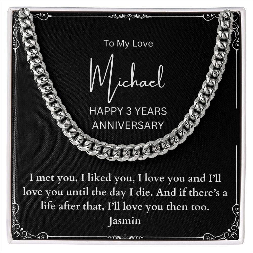 Personalized Happy 3 Years Anniversary Cuban Chain Gift for My